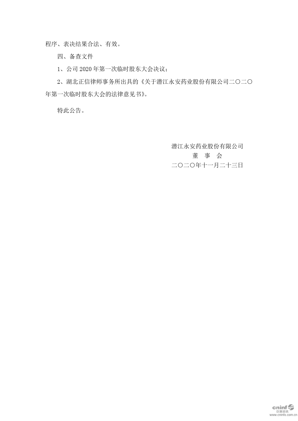2020年第一次臨時股東大會決議公告