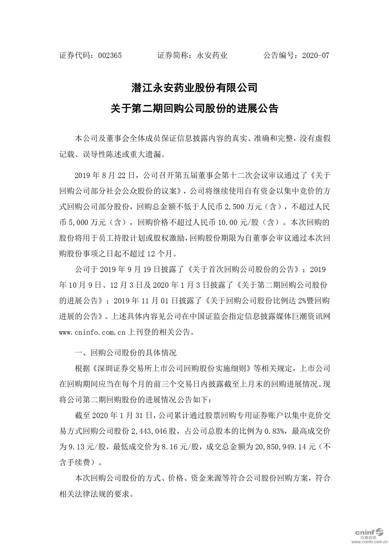 關(guān)于第二期回購公司股份的進展公告
