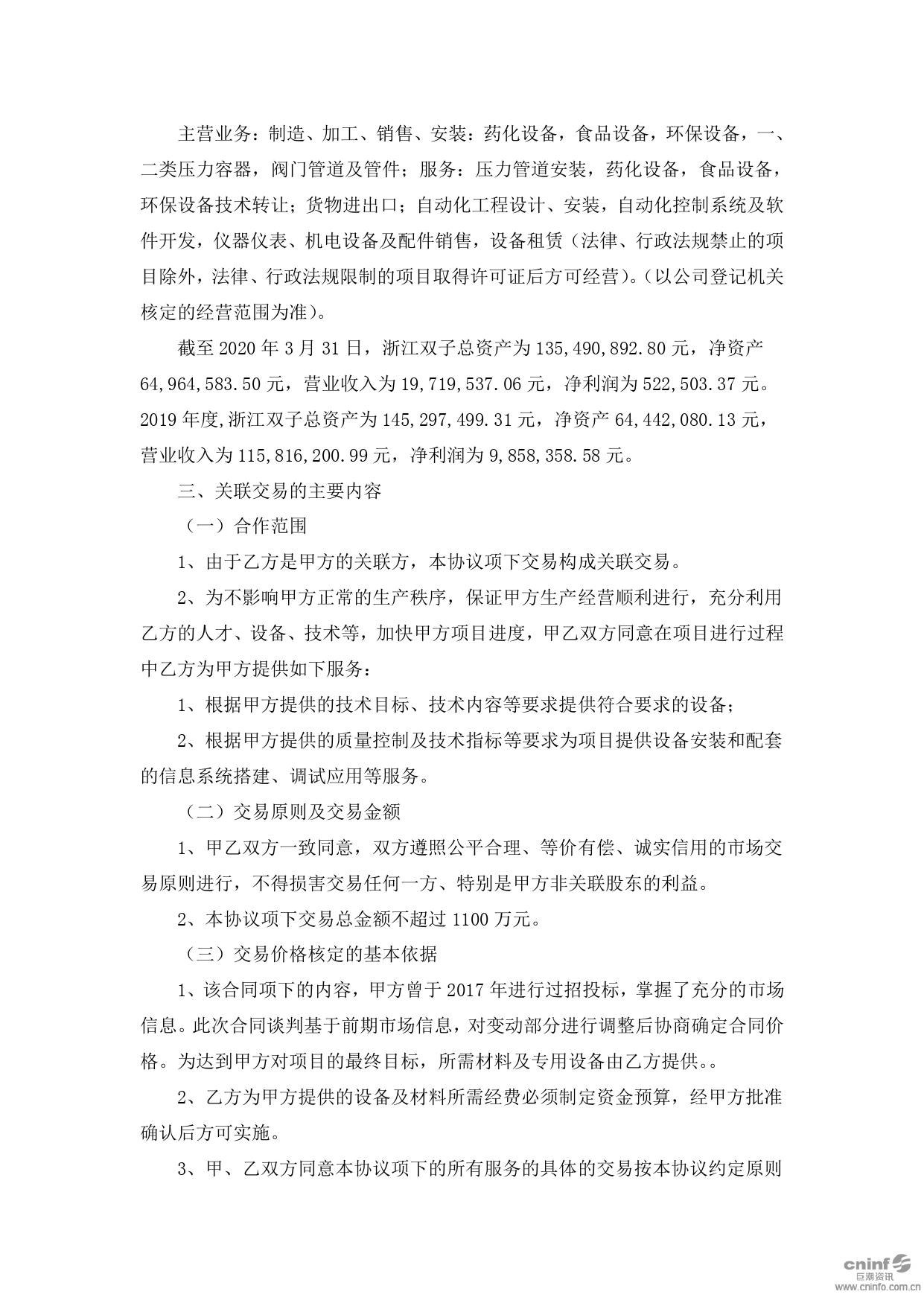 關(guān)于與浙江雙子智能裝備有限公司簽訂設(shè)備制造及系統(tǒng)集成框架協(xié)議的公告