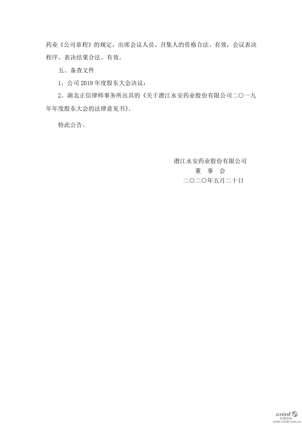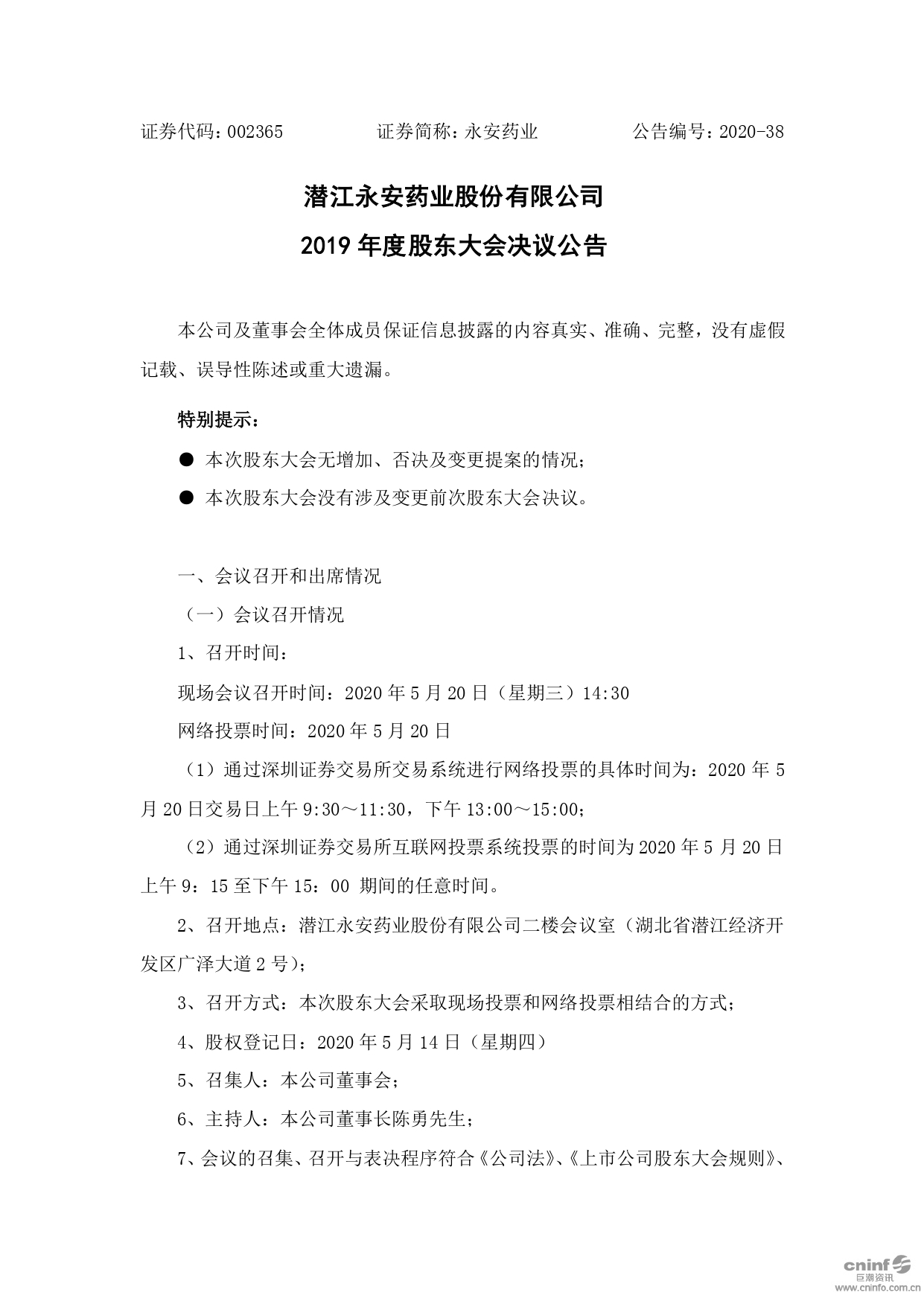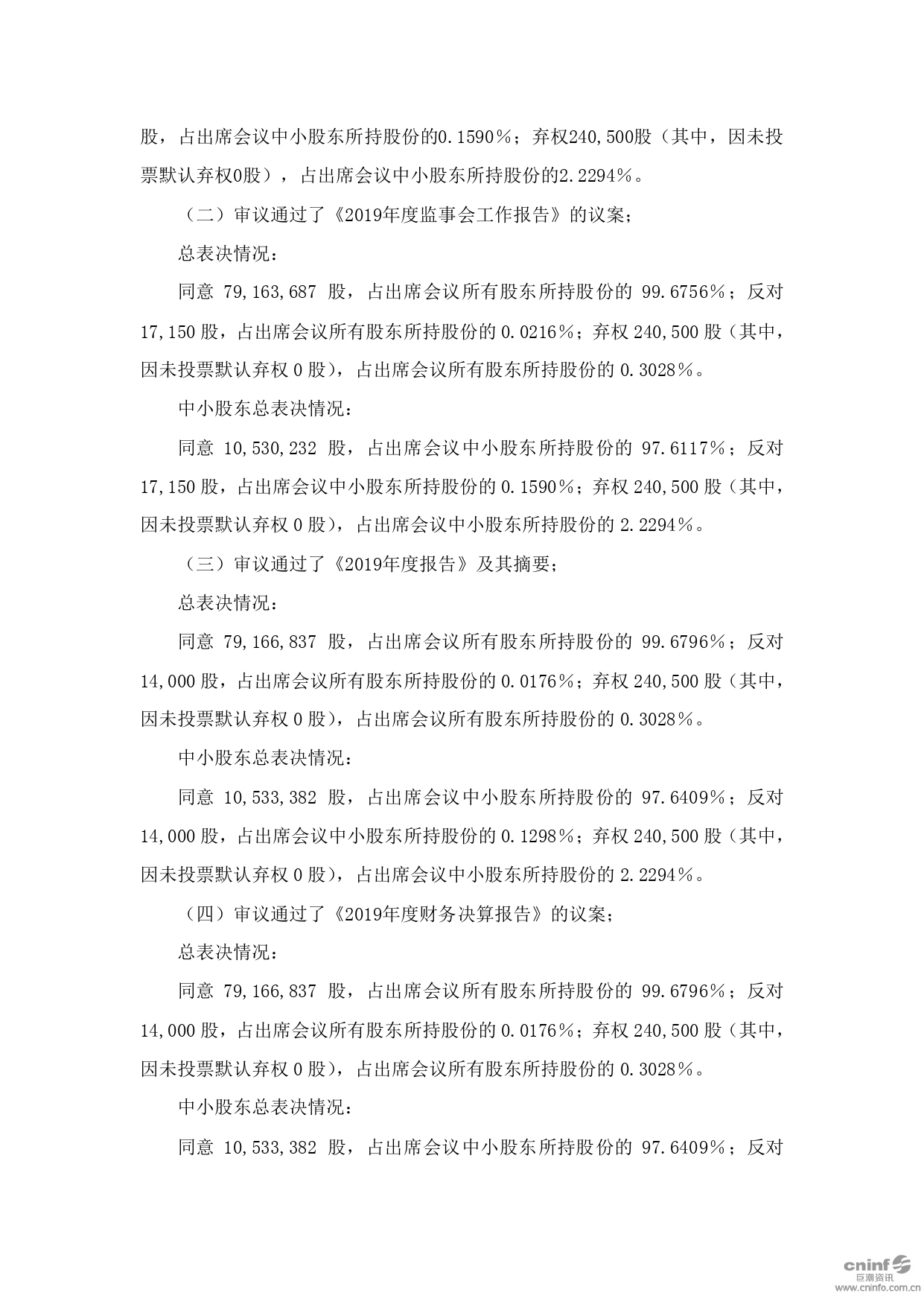 2019年度股東大會(huì)決議公告