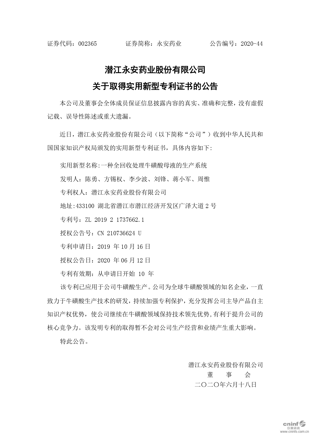 關(guān)于取得實(shí)用新型專利證書的公告