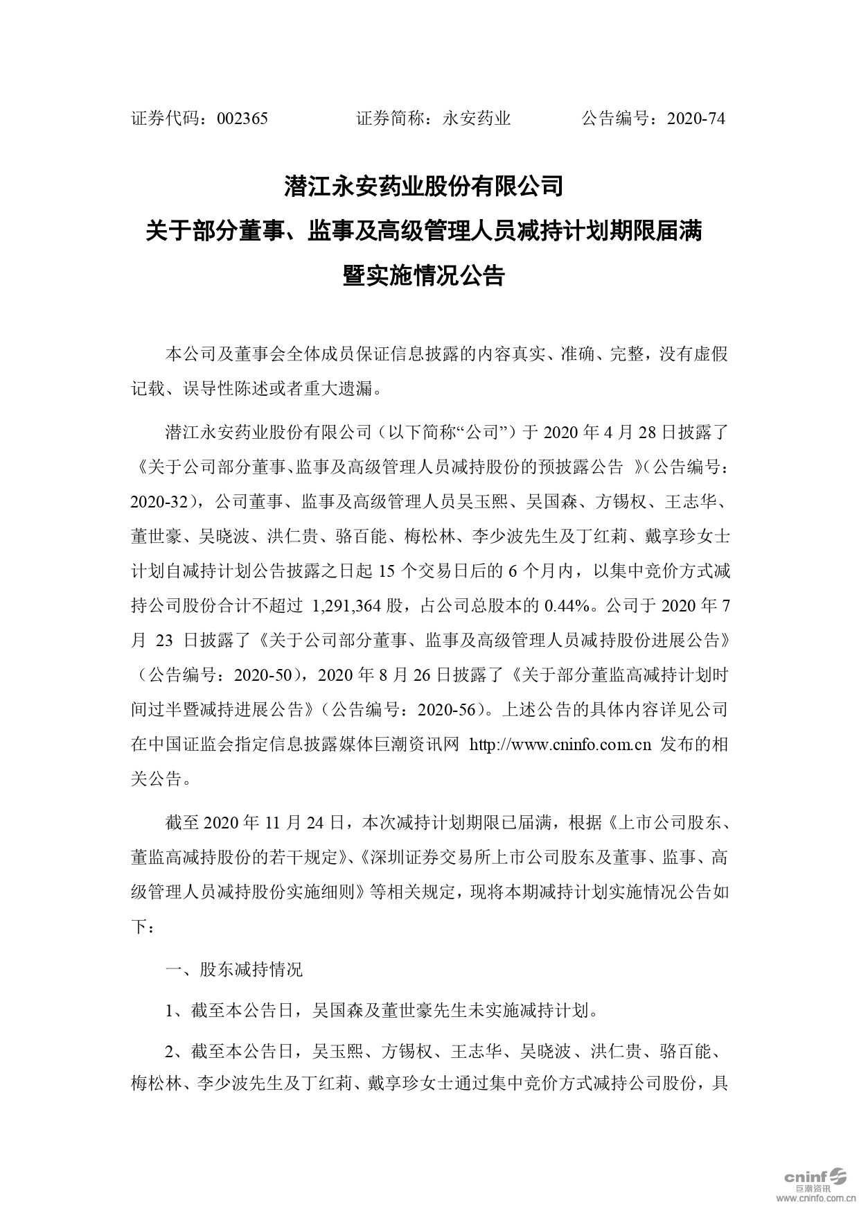 關(guān)于部分董事、監(jiān)事及高級管理人員減持計(jì)劃期限屆滿暨實(shí)施情況公告