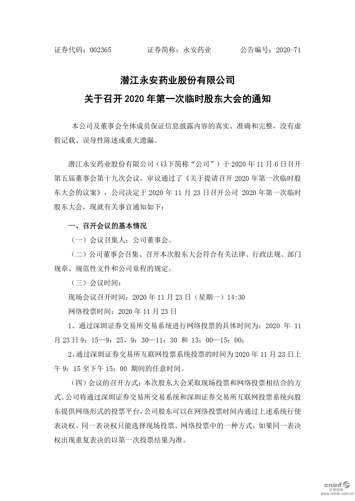 關(guān)于召開2020年第一次臨時股東大會的通知