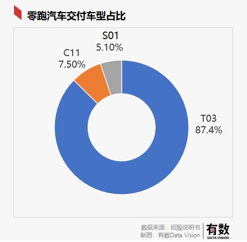 雖說零跑已開始交付轎跑S01和SUV系列的C11,但占比非常小,分別交付2700余輛和4000輛,出貨主力還是T03。