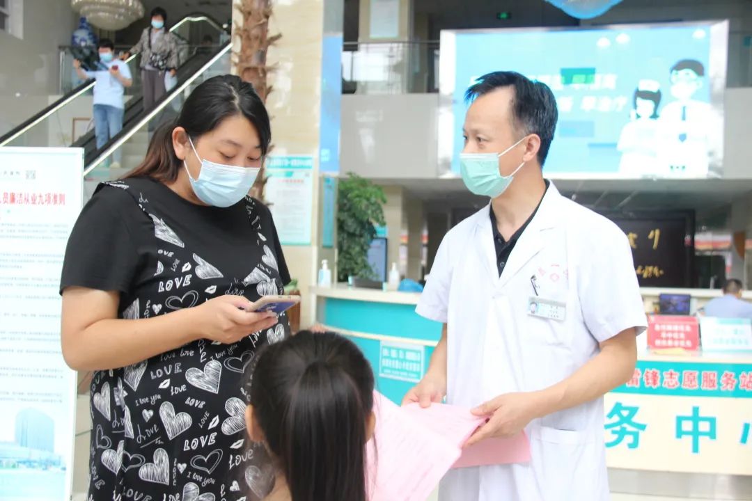 口腔科醫(yī)護人員在門診大廳舉行了集中宣傳咨詢活動,為過往群眾發(fā)放宣傳材料,科普口腔疾病防治知識,并重點向家長宣傳兒童青少年愛牙護牙、保持口腔健康的預防要點。