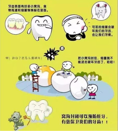 窩溝封閉是預防窩溝齲的最有效方法,不產生創(chuàng)傷, 不引 起疼痛, 是用高分子材料把牙齒的窩溝填平后, 使牙面變得 光滑易清潔,細菌不易存留,從而預防窩溝齲。建議 11-13 歲可進行第二恒磨牙的窩溝封閉。
