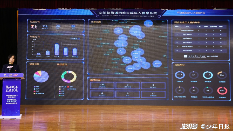 面臨監(jiān)護(hù)人的突然缺失,如何及時(shí)落實(shí)對(duì)孩子的救助?對(duì)于街道內(nèi)的問題兒童,如何獲取其動(dòng)態(tài)信息,實(shí)施幫扶和幫助工作?3月16日,華陽(yáng)路街道未成年人保護(hù)聯(lián)盟和華陽(yáng)“關(guān)愛保護(hù)云”信息系統(tǒng)正式啟動(dòng),成為全市街鎮(zhèn)未保數(shù)字化工作的創(chuàng)新型模式。
