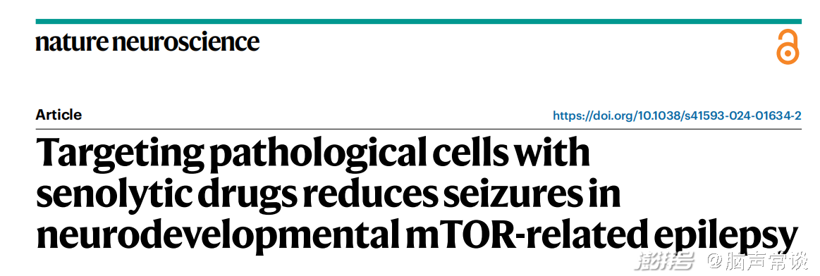 2024年5月6日,索邦大學(xué)Stéphanie Baulac團(tuán)隊(duì)在Nature neuroscience發(fā)表“Targeting pathological cells with senolytic drugs reduces seizures in neurodevelopmental mTOR-related epilepsy”,揭示了用衰老藥物靶向病理細(xì)胞可減少神經(jīng)發(fā)育性mTOR相關(guān)癲癇發(fā)作。