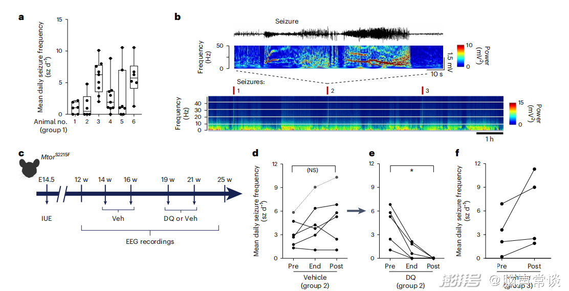 圖三 DQ給藥對(duì)mTORS2215F動(dòng)物癲癇發(fā)作的有益作用