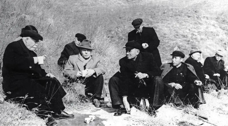 1959 年11 月,李四光(右5)與蘇聯(lián)專家在北京西山隆恩寺鑒定第四紀(jì)冰川基巖冰溜面圖/中國(guó)地質(zhì)科學(xué)院