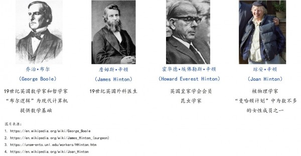 辛頓出生于學術世家,他是19世紀英國數(shù)學家和哲學家喬治?布爾(George Boole)和19世紀書寫美國歷史的外科醫(yī)生詹姆斯?辛頓(James Hinton)的玄孫。喬治?布爾提出的“布爾邏輯”(是一種使用布爾運算符連接各個檢索詞,然后由計算機進行相應邏輯運算,以找出所需信息的方法)為現(xiàn)代計算機提供了數(shù)學基礎。辛頓的堂姐核物理學家瓊安?辛頓(Joan Hinton)是“曼哈頓計劃”(Manhattan Project,20世紀40年代美國為制造原子彈而實施的一項秘密軍事工程)中為數(shù)不多的女性成員之一。其父親是英國皇家學會會員、昆蟲學家霍華德?埃佛勒斯?辛頓(Howard Everest Hinton)。