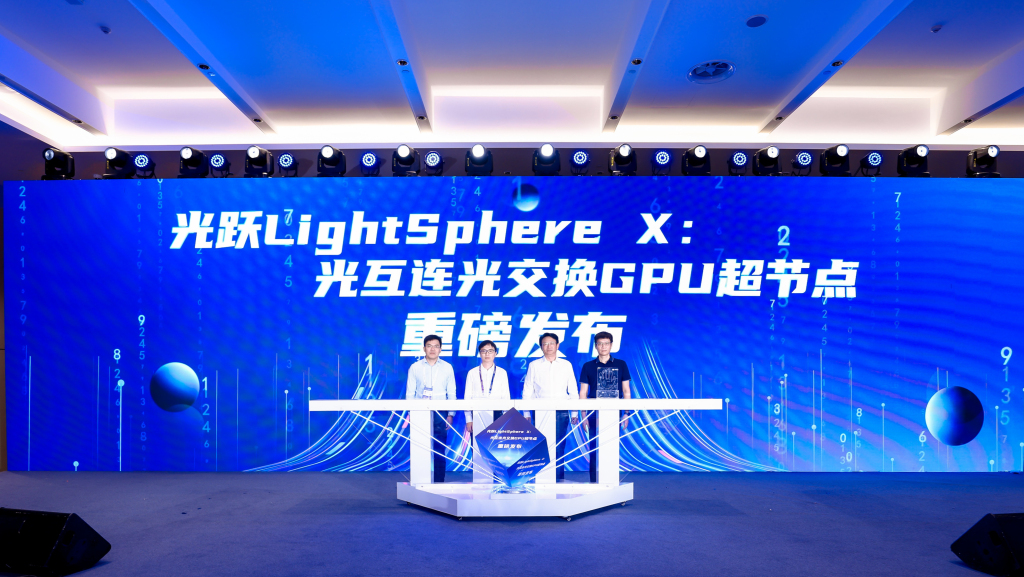 7月28日,國(guó)內(nèi)首個(gè)光互連光交換GPU超節(jié)點(diǎn)——光躍LightSphere X發(fā)布。 主辦方 供圖