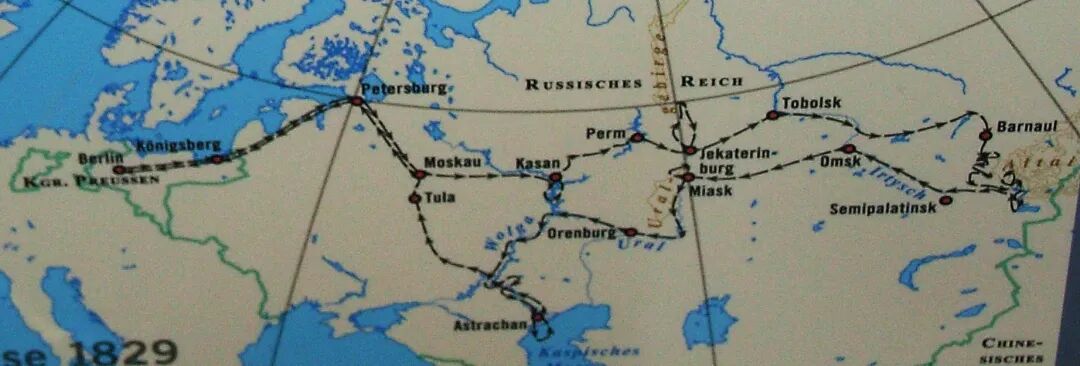 1829年亞歷山大·洪堡的俄國之旅路線圖