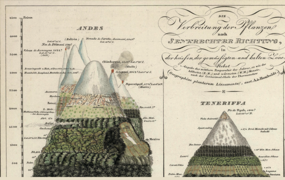 《宇宙》所附圖冊中的安第斯山脈的植被分布圖(局部展示)