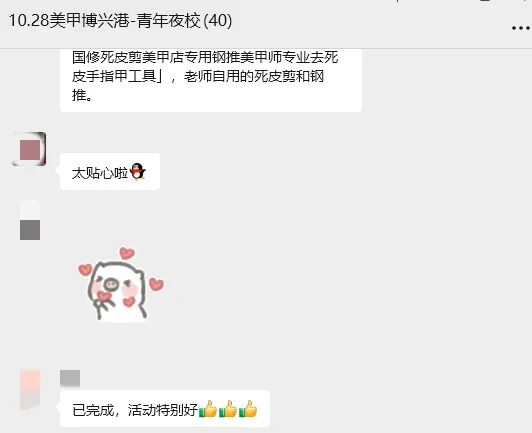 有同學(xué)夸贊咱們夜校辦得好!有同學(xué)反饋說(shuō)在美甲課學(xué)到了很多,做的指甲好看、老師貼心~也有同學(xué)分享在劇本殺中的真實(shí)體驗(yàn),入戲感不要太強(qiáng)!還有同學(xué)關(guān)注點(diǎn)在搏擊課教練又帥又能打??。ú皇莵?lái)學(xué)拳的嗎?)