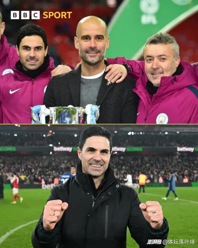 瓜迪奧拉曼城首冠正是聯(lián)賽杯勝槍手,當(dāng)時阿爾特塔坐在他身旁的助教席