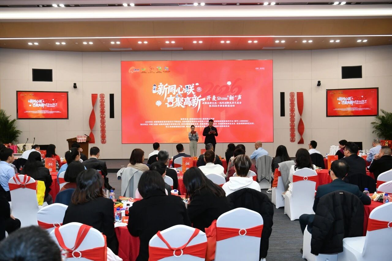 2月6日,“新同心聯(lián)·喜聚高新”——開麥Show“新”聲成都高新區(qū)統(tǒng)一戰(zhàn)線創(chuàng)新成果交流會(huì)暨2026年新春聯(lián)誼活動(dòng)在新川國別服務(wù)中心舉行。會(huì)上發(fā)布“同心創(chuàng)π”計(jì)劃,計(jì)劃在2026年內(nèi),重點(diǎn)推動(dòng)一批科技與文創(chuàng)企業(yè)融合交流的跨界合作平臺(tái),并舉辦成果展示活動(dòng),推動(dòng)優(yōu)秀項(xiàng)目落地轉(zhuǎn)化。