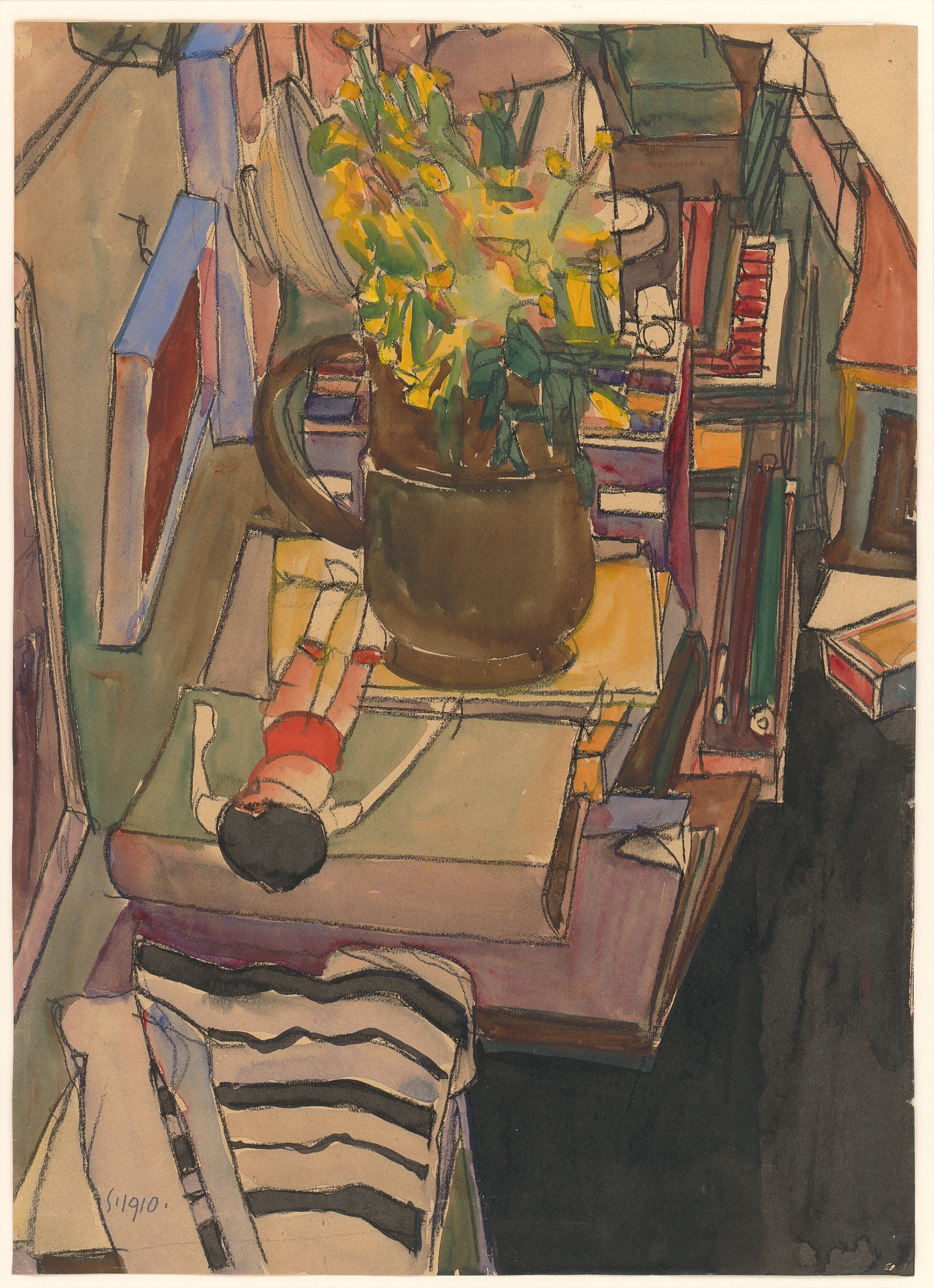 《藝術(shù)家工作室一景》,1910年, 紙本水彩、水粉和黑色蠟筆, 私人收??藏