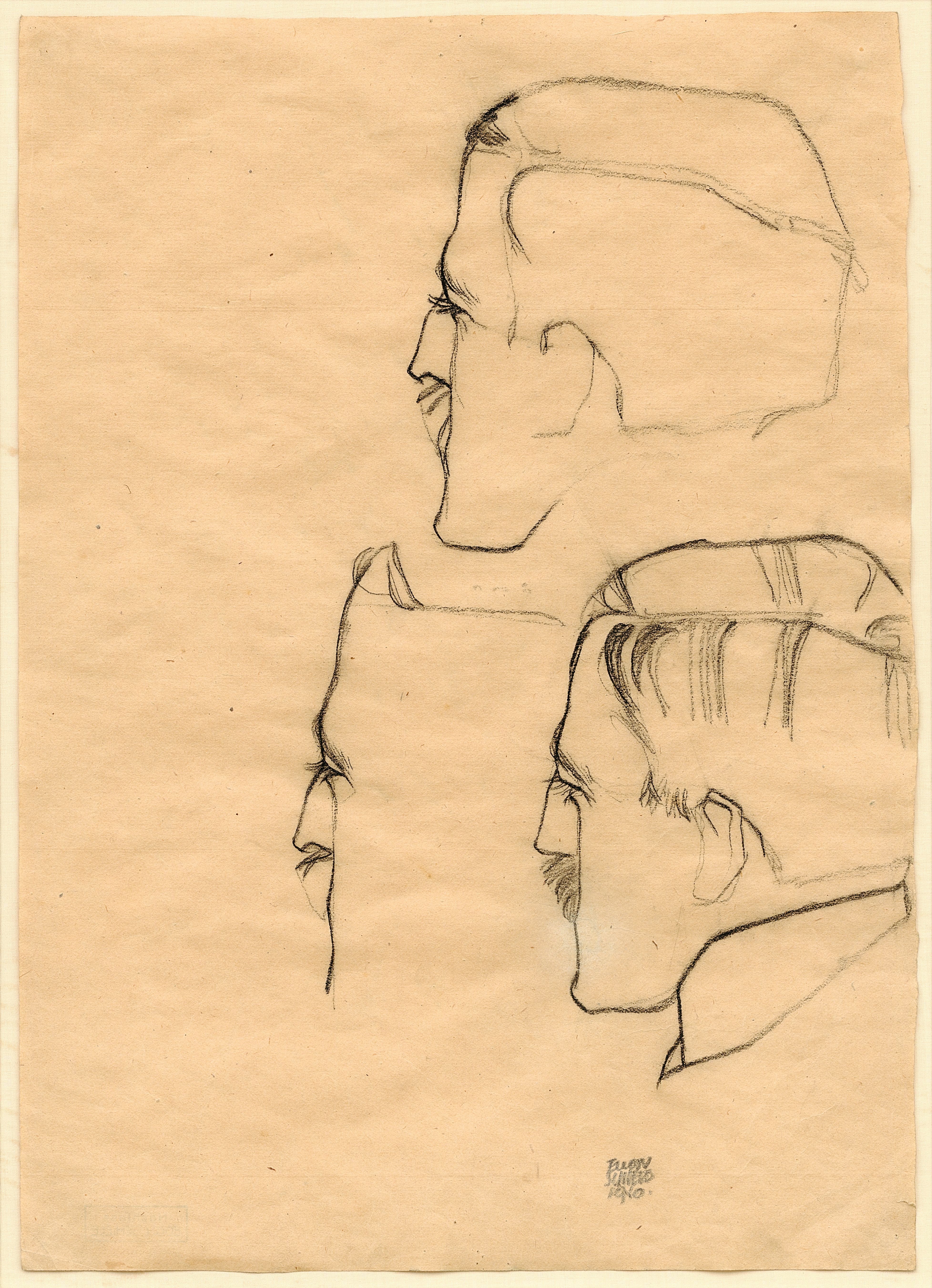 埃貢·席勒 《馮·格拉夫醫(yī)生的三個頭像習(xí)作》,1910年, 紙上炭筆畫, 私人收藏
