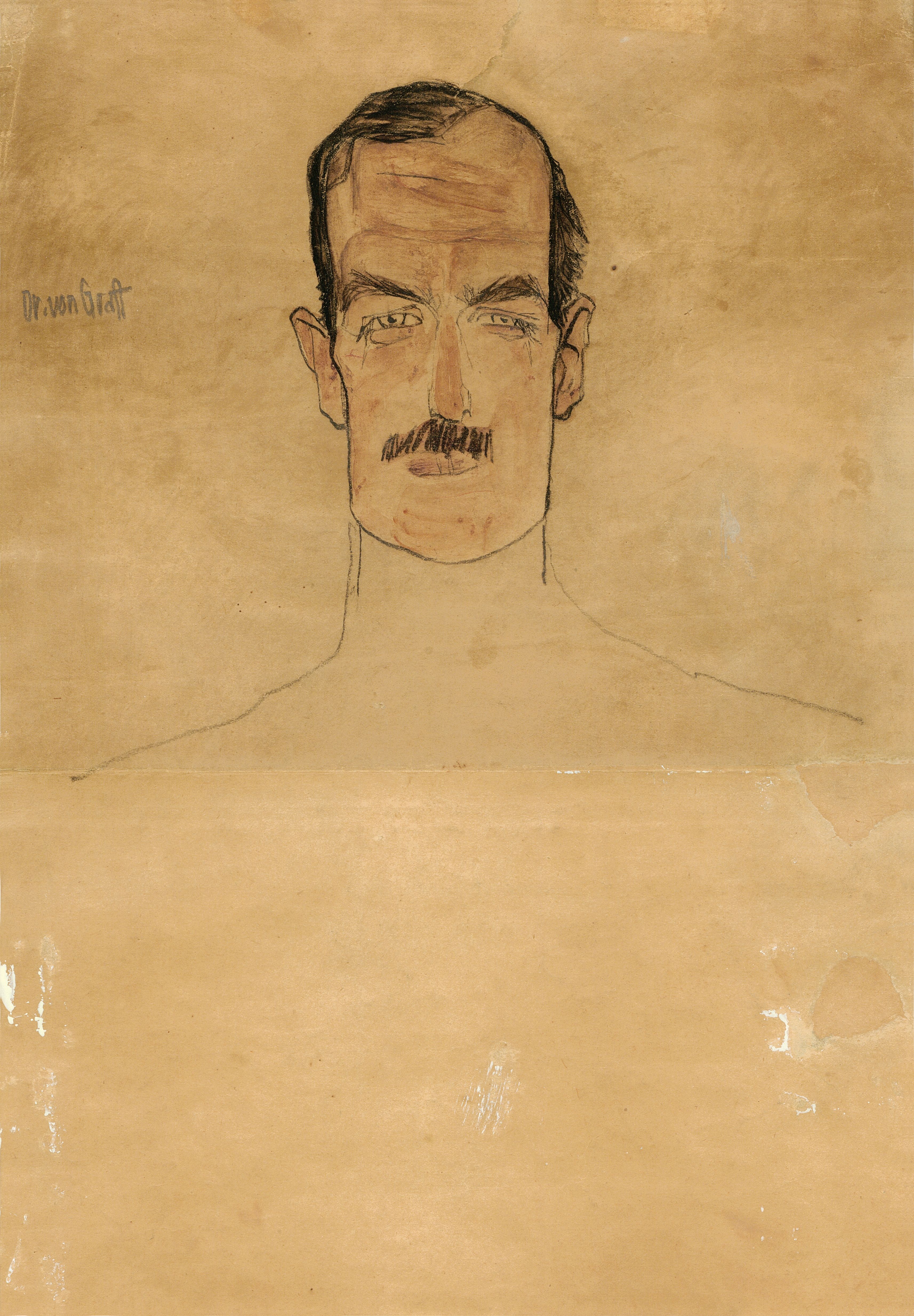 本次展覽的核心是席勒1910年創(chuàng)作的布面油畫《歐文·馮·格拉夫醫(yī)生肖像》,與現(xiàn)存的兩幅紙上草稿一同展出。據(jù)知席勒曾創(chuàng)作過三幅草稿,但目前僅存兩幅。