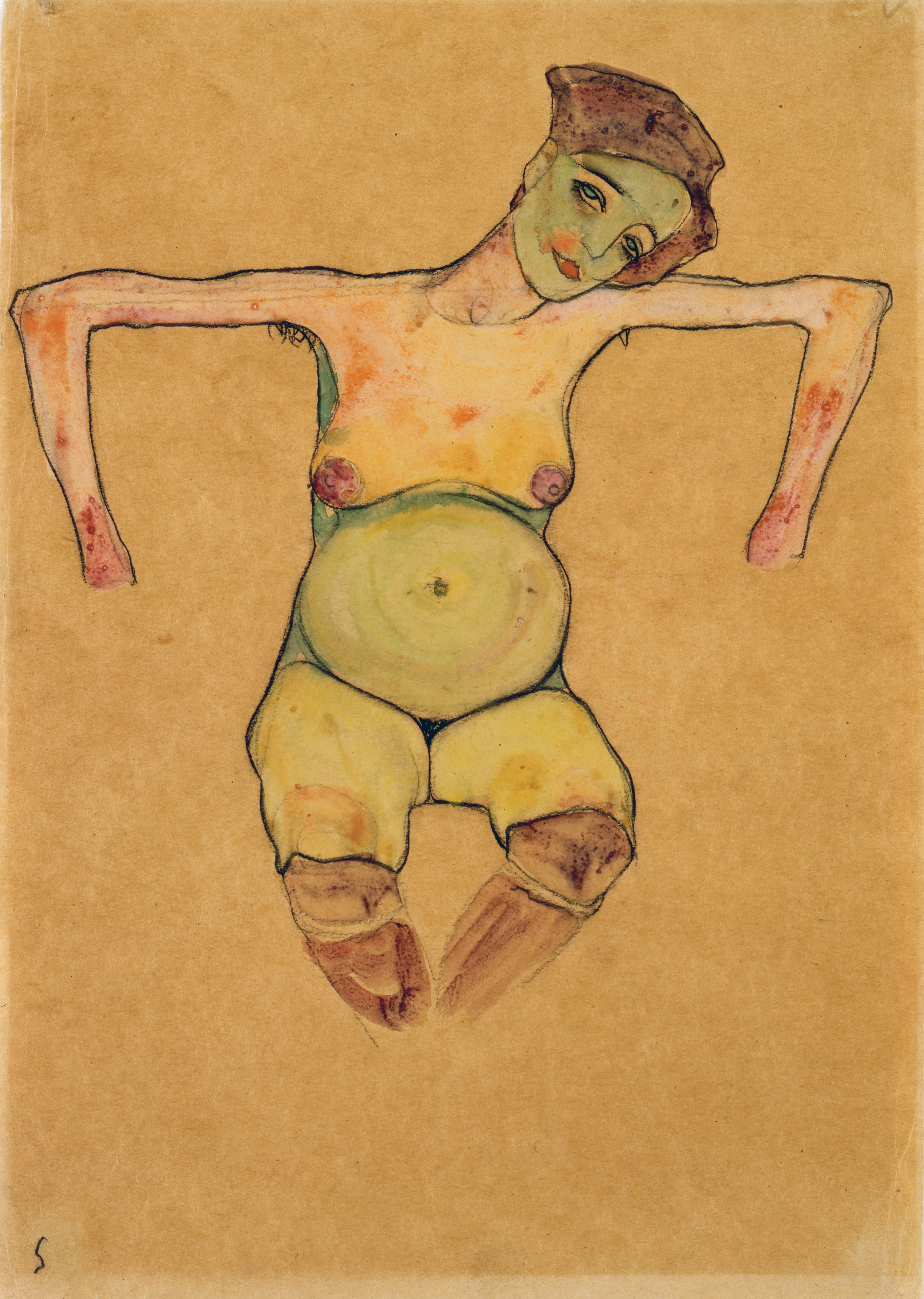 《孕婦》,1910年, 紙本水粉、水彩和蠟筆, 匿名出借人