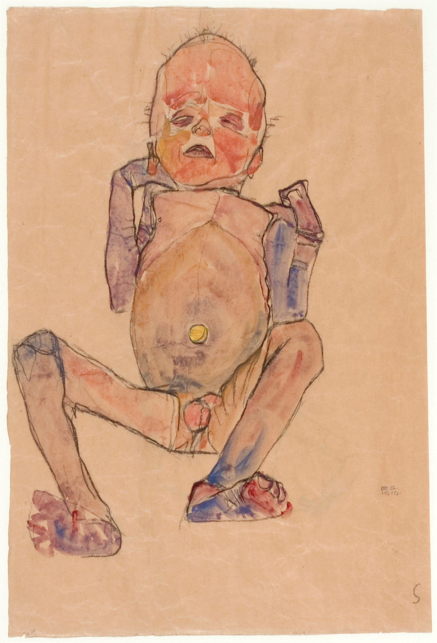 《新生兒》,1910年, 紙本水彩和炭筆畫 ,密歇根大學(xué)藝術(shù)博物館 藏