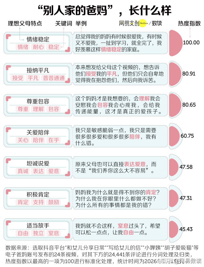 而在“電子爸媽”噓寒問暖的對比之下,現(xiàn)實中的父母難免顯得更加面容可憎,一些人喊著“這樣哄孩子的話,從未有人對我說過”,指責(zé)著父母的失責(zé):