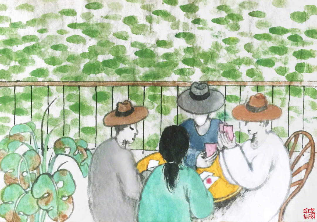 下班朋友聚一處,扯扯淡,吹吹風(fēng),打打牌。 ???