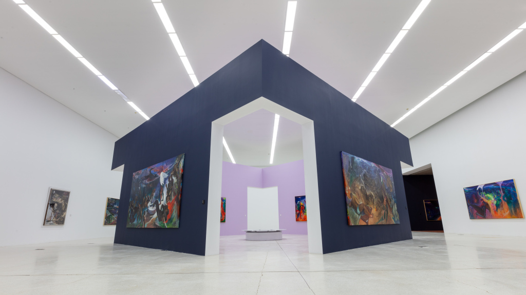 “極光”展廳中心特別設(shè)計(jì)了“內(nèi)殿”展墻,四周環(huán)繞的是他始于2016年的宏大敘事系列——“十部曲”,記錄了他曾在東西方文化語(yǔ)境間徘徊、博弈的艱辛歷程。