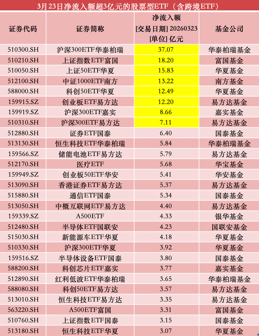 3月23日,A股三大股指跌超3%,滬指退守3800點。然而,在市場調整之際,資金借道ETF入市的熱情卻絲毫未減。