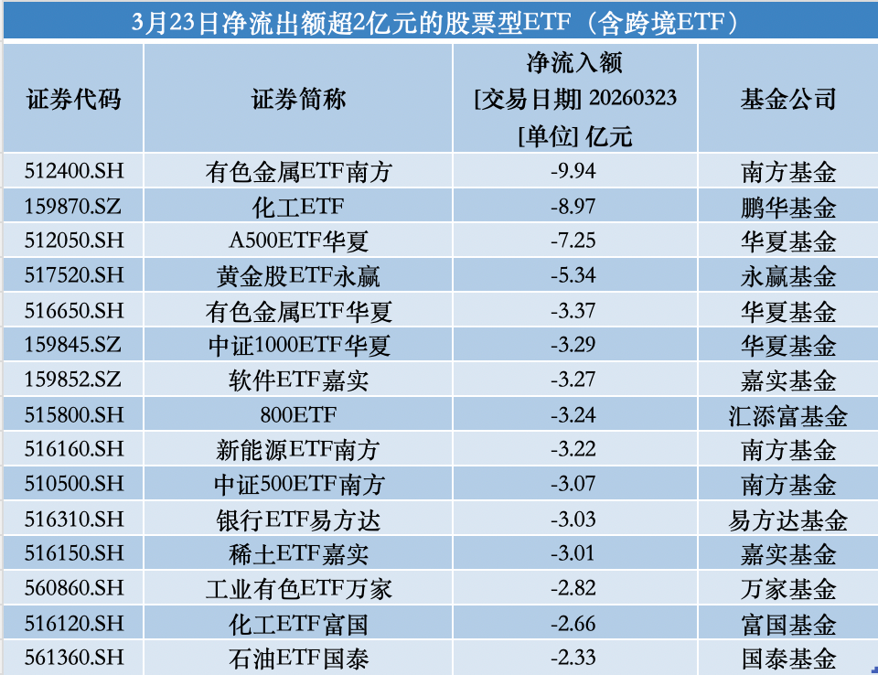 從資金流出方向觀察,有色金屬、化工主題ETF“失血”較為明顯。