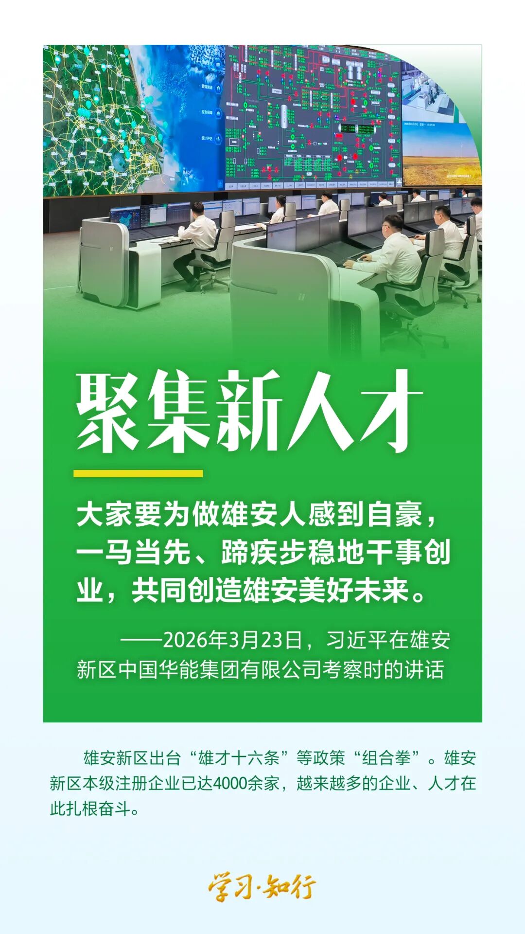 2026年3月23日,習(xí)近平總書記在河北雄安新區(qū)考察,主持召開深入推進(jìn)雄安新區(qū)高質(zhì)量建設(shè)和發(fā)展座談會(huì),強(qiáng)調(diào)牢牢把握雄安新區(qū)功能定位,努力建設(shè)新時(shí)代創(chuàng)新高地和推動(dòng)高質(zhì)量發(fā)展樣板。