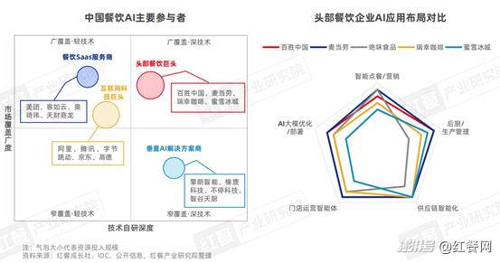 從餐飲AI的市場(chǎng)參與者來看,中國(guó)餐飲AI市場(chǎng)的主要參與者包括頭部餐飲巨頭、SaaS服務(wù)商、垂直AI解決方案商及跨界互聯(lián)網(wǎng)巨頭。