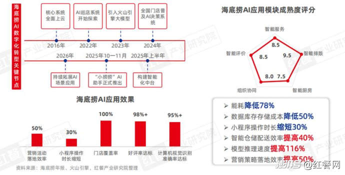 其中,以麥當(dāng)勞、海底撈、瑞幸咖啡、蜜雪冰城、絕味食品、巴奴火鍋、新榮記、和府撈面等為代表的餐飲企業(yè),憑借龐大門店網(wǎng)絡(luò)、海量數(shù)據(jù)沉淀與雄厚資本,在推動(dòng)餐飲AI應(yīng)用落地中發(fā)揮了重要作用。但考慮到數(shù)據(jù)安全和開發(fā)成本及應(yīng)用閉環(huán),頭部企業(yè)的AI應(yīng)用難以普及到更多餐飲企業(yè)。