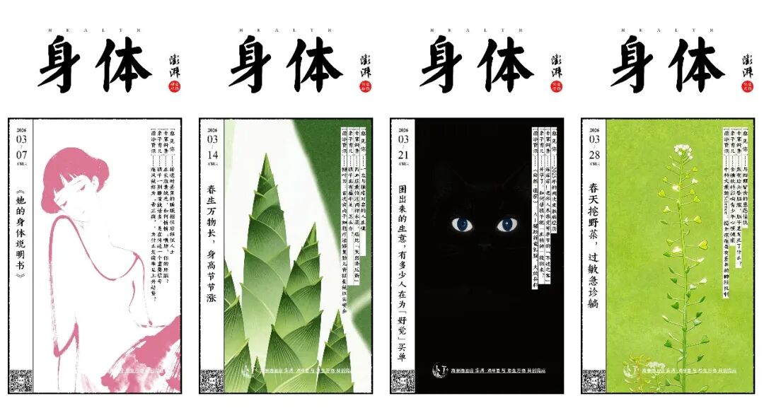 澎湃新聞《身體周刊》前身為《東方早報(bào)》同名刊物,每周六更新。每期圍繞一個(gè)主題,深度解析當(dāng)周健康熱點(diǎn),并設(shè)有親子育兒、前沿資訊等板塊,以多維醫(yī)學(xué)知識(shí)傳遞科學(xué)價(jià)值觀。