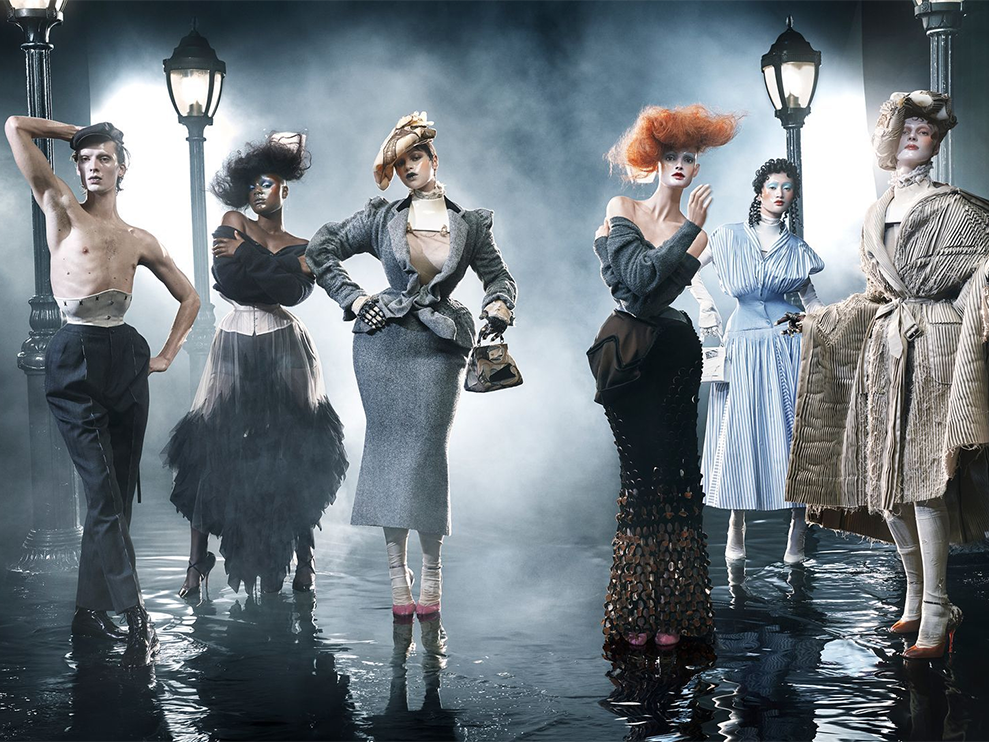 早在倫敦中央圣馬丁學(xué)習(xí)時(shí),John Galliano便以歷史與民族服飾混搭、夸張舞臺(tái)化造型脫穎而出。1997年至2011年擔(dān)任Christian Dior創(chuàng)意總監(jiān)期間,他將浪子般的自由與奢華禮服結(jié)合,打造出舞臺(tái)化高定秀,強(qiáng)化了“海盜”氣質(zhì)。之后在Maison Margiela,他將戲劇感延伸至解構(gòu)主義與概念化設(shè)計(jì),通過跨界搜刮歷史與藝術(shù)元素重組服裝語言,成為真正的“文化海盜”。