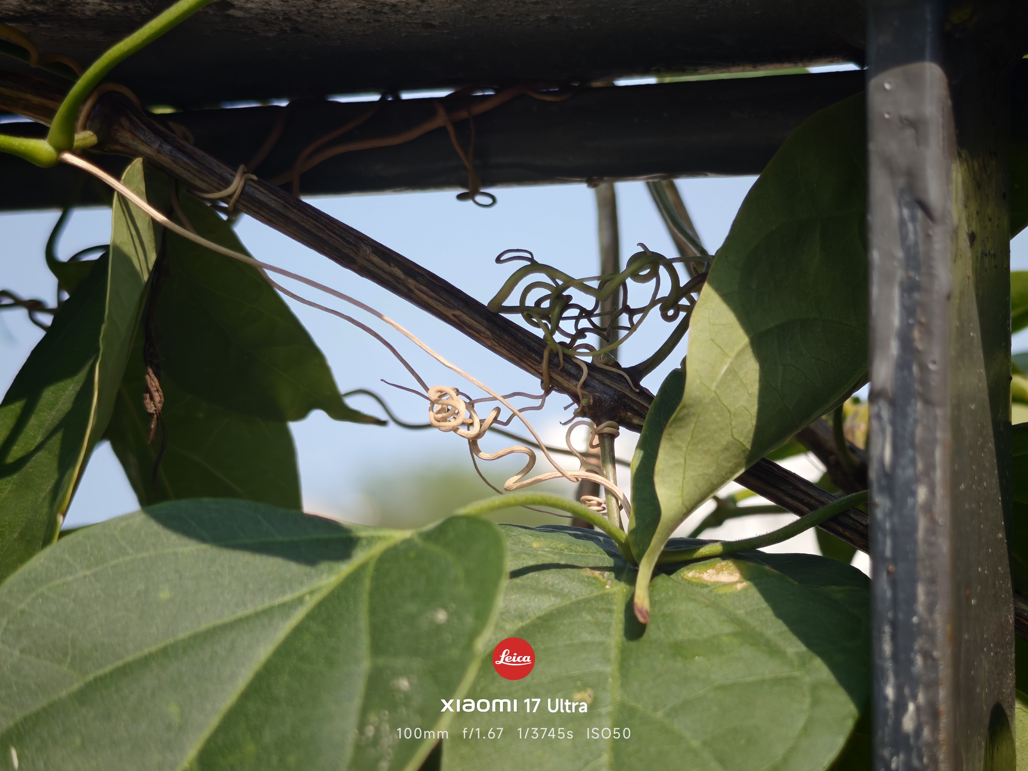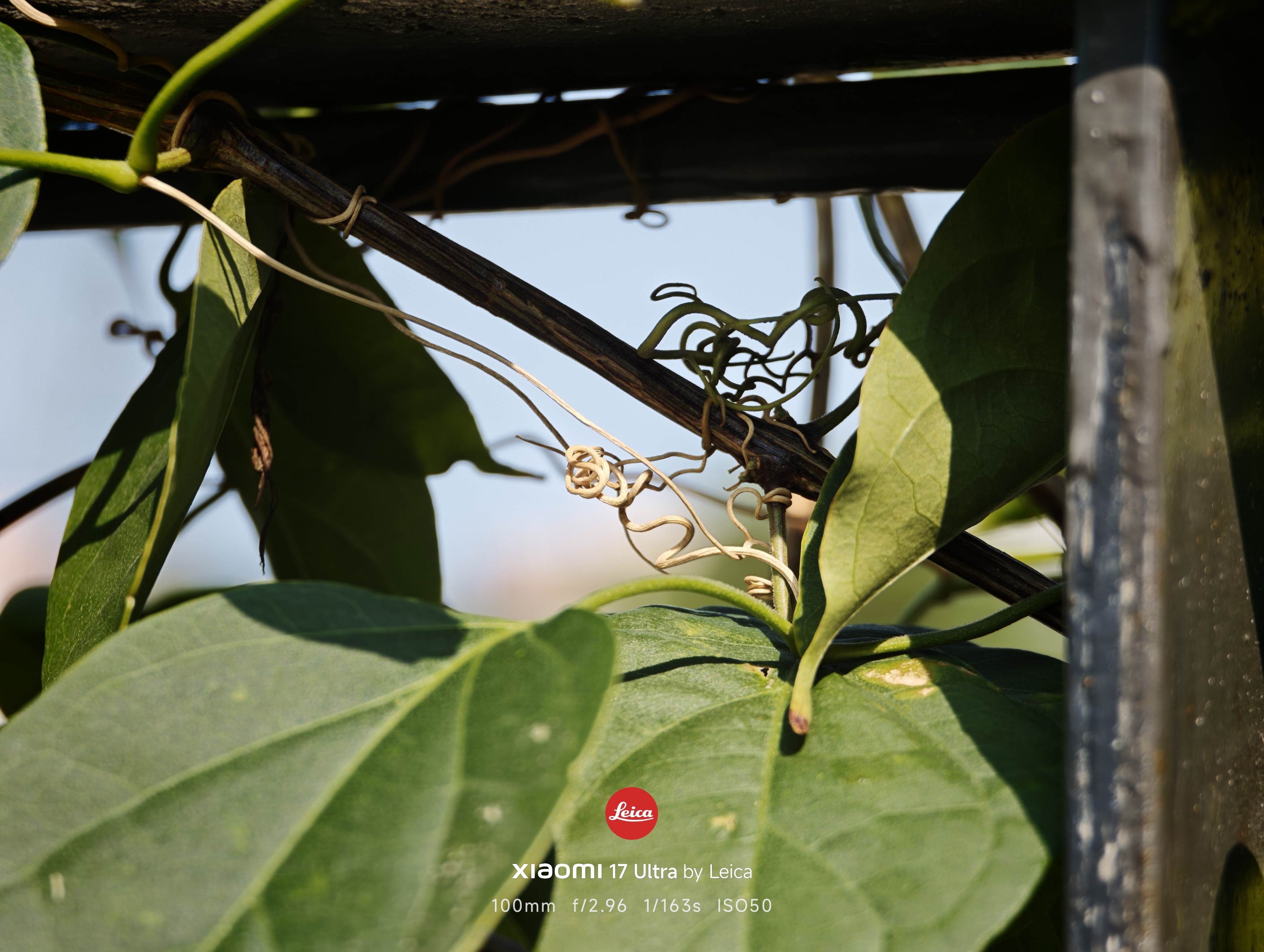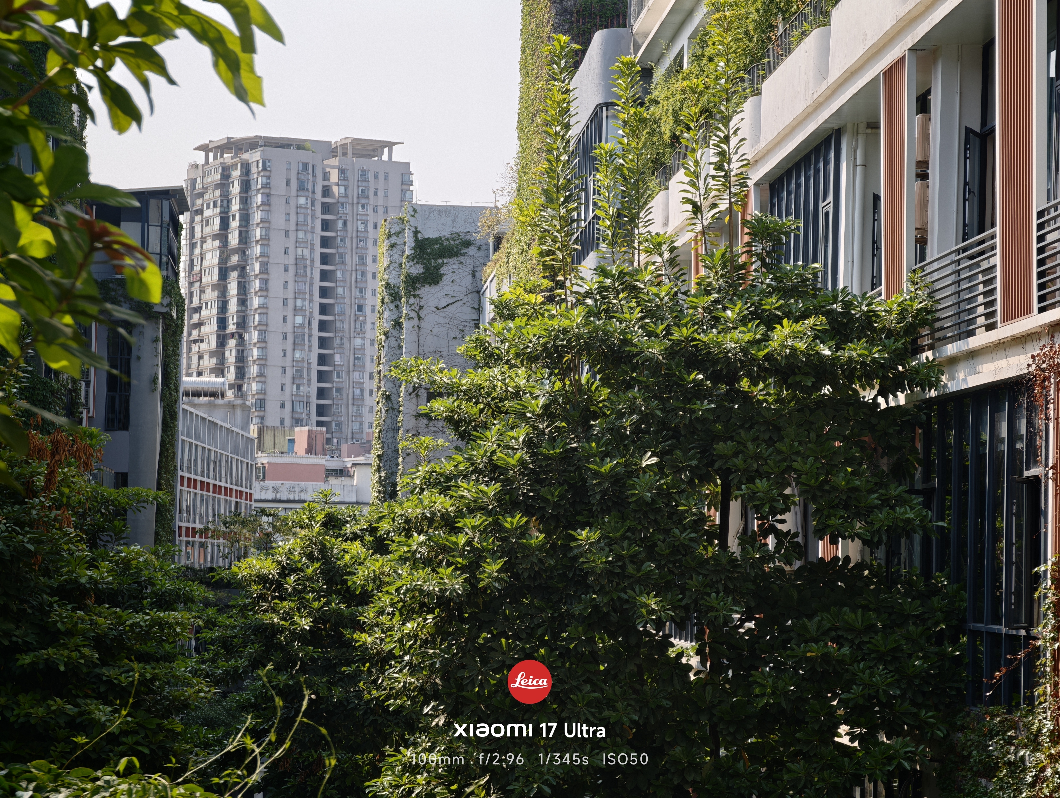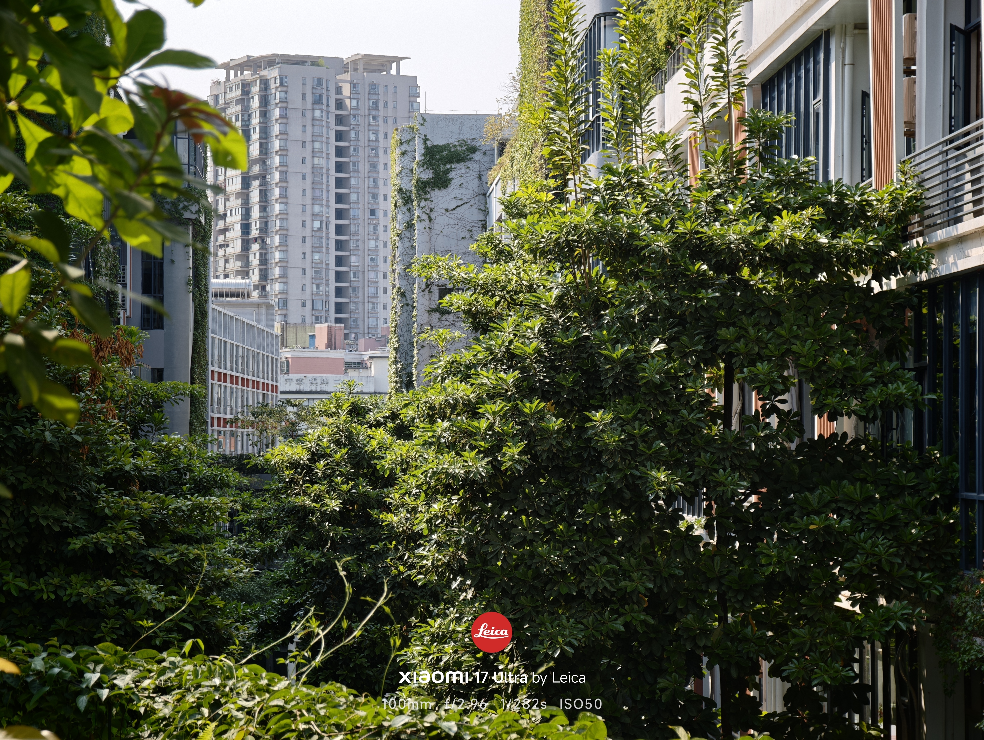 但當我把這組照片放到電腦上仔細查看時,差異立馬就顯現出來了:沒有貼膜的小米 17 Ultra 徠卡版,整體畫面的線條銳利清晰,哪怕是遠處的樹葉也能分辨出大致的輪廓;而貼了那張 8.5 元塑料膜的手機,畫面邊緣出現了明顯的「發(fā)糊」現象。