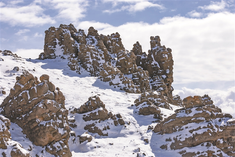 4月10日拍攝的“巴毛窮宗”地區(qū)玄武巖風蝕柱地貌。新華社記者 姜帆 攝