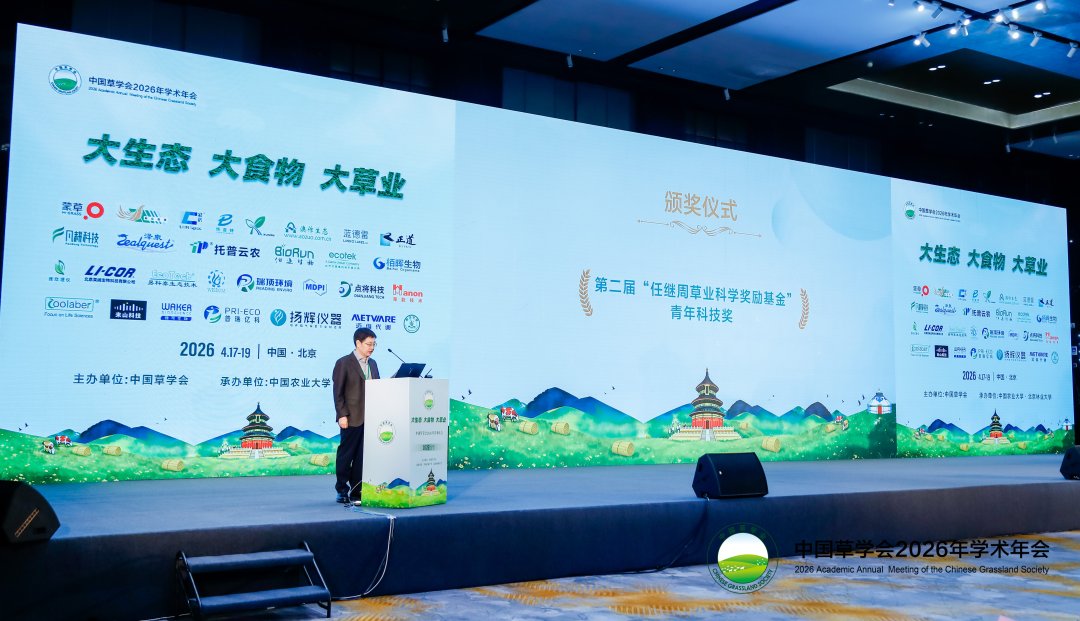 4月18日,第二屆“任繼周草業(yè)科學(xué)獎(jiǎng)勵(lì)基金”青年科技獎(jiǎng)?lì)C獎(jiǎng)儀式在中國(guó)草學(xué)會(huì)2026年學(xué)術(shù)年會(huì)舉行。中國(guó)工程院院士、中國(guó)草學(xué)會(huì)理事長(zhǎng)、蘭州大學(xué)教授南志標(biāo),中國(guó)工程院院士、中國(guó)農(nóng)業(yè)大學(xué)教授張福鎖,中國(guó)工程院院士、中國(guó)林業(yè)科學(xué)院研究員劉世榮,發(fā)展中國(guó)家科學(xué)院院士、北京大學(xué)教授黃季焜,中國(guó)農(nóng)業(yè)大學(xué)副校長(zhǎng)田見(jiàn)暉,北京林業(yè)大學(xué)副校長(zhǎng)張志強(qiáng),中國(guó)科學(xué)技術(shù)協(xié)會(huì)宣傳文化部副部長(zhǎng)宋玉榮,全國(guó)畜牧總站副站長(zhǎng)楊勁松,國(guó)家林業(yè)和草原局草原管理司二級(jí)巡視員王卓然,中國(guó)農(nóng)業(yè)科學(xué)院草原研究所所長(zhǎng)林克劍等出席儀式。蘭州大學(xué)草地農(nóng)業(yè)科技學(xué)院黨委書(shū)記張大偉,院長(zhǎng)李春杰,副院長(zhǎng)劉志鵬、朱劍霄、范成勇及教師代表參加。儀式由中國(guó)草學(xué)會(huì)副理事長(zhǎng)、“任繼周草業(yè)科學(xué)獎(jiǎng)勵(lì)基金”青年科技獎(jiǎng)評(píng)審委員會(huì)主任、蘭州大學(xué)教授賀金生主持。
