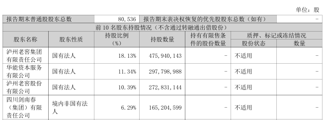 股權(quán)方面,華西證券2026年一季報(bào)顯示,截至報(bào)告期末,公司共有4家股東持股比例超5%。其中,瀘州老窖集團(tuán)有限責(zé)任公司持股18.13%,華能資本服務(wù)有限公司持股11.34%,瀘州老窖股份有限公司持股10.39%,四川劍南春集團(tuán)有限責(zé)任公司持股6.62%。