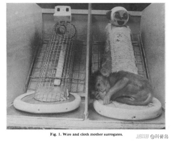 哈洛實(shí)驗(yàn)中的小猴子選擇了“絨布媽媽”而非“鐵絲奶媽”(圖片來(lái)源:pansci)