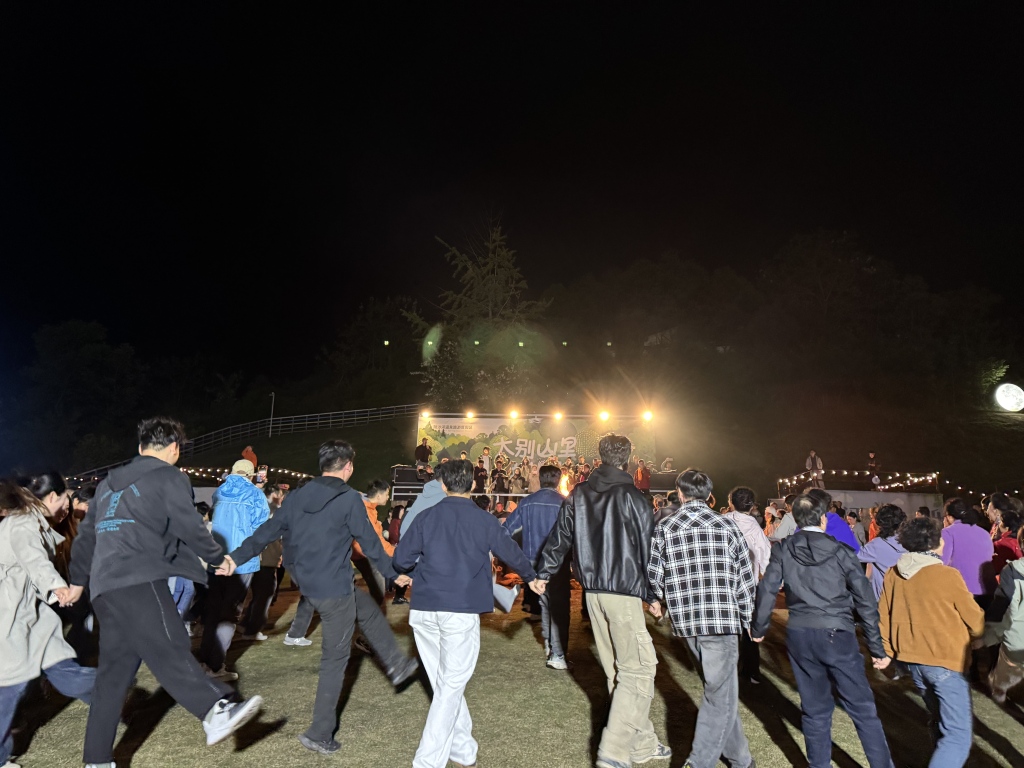 陡沙河溫泉小鎮(zhèn)在春季為游客舉行篝火晚會(huì) 澎湃新聞?dòng)浾?徐亦嘉 圖