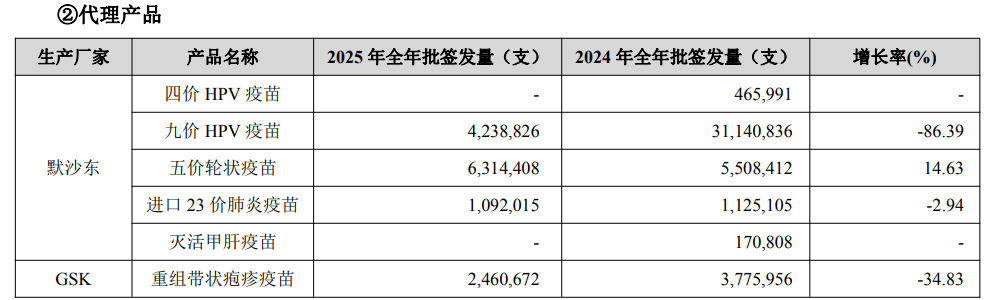 具體到疫苗產(chǎn)品,代理的默沙東四價HPV疫苗在2025年已無批簽發(fā)量;曾經(jīng)“一針難求”的九價HPV疫苗批簽發(fā)量下滑86.39%,只有423.8826萬支。智飛生物還曾代理葛蘭素史克(GSK)的帶狀皰疹疫苗,銷售表現(xiàn)同樣不樂觀。2025年全年批簽發(fā)246.07萬支,同比下降34.83%。